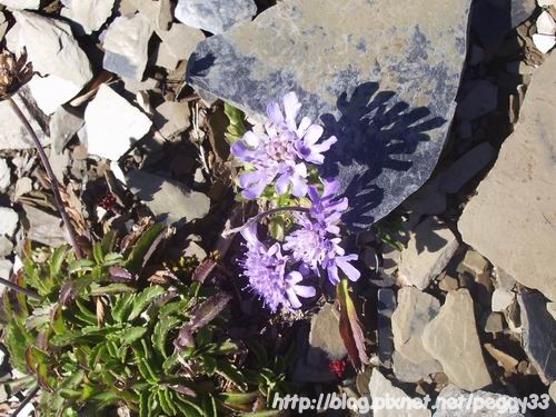 美麗的紫色小花是玉山山羅蔔,我們這次走嘉明湖沿路也看到不少。